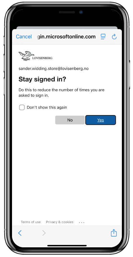 Steg 7: For å fortsette å være innlogget til enhver tid, trykk «Ja».